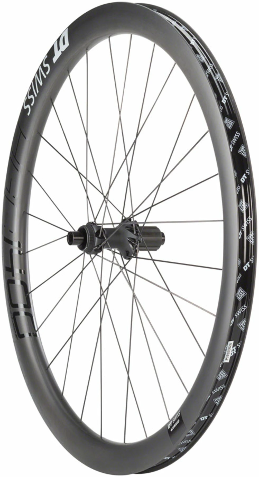 – 3 cross spoke pattern, DT AeroComp Hybrid straight pull spokes, DT Pro Lock hidden aluminum spoke nipples