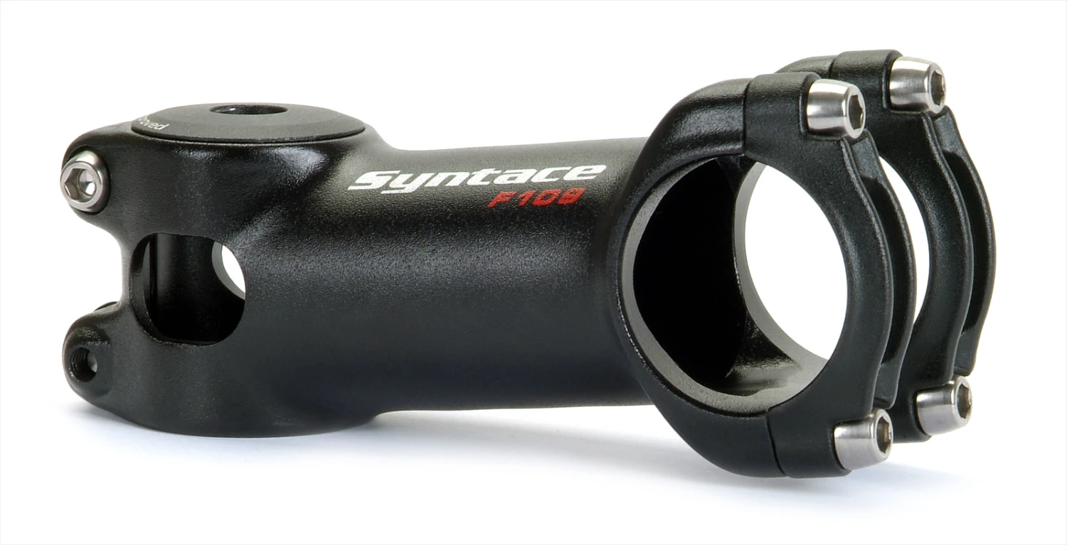 From road to mountain, Syntace’s Force 109 stem offers a variety of lengths in a 6° rise with thoughtfully engineered features. It’s oversized stem tube diameter offers increased stiffness, and titanium bolts shed unecessary weight. A 200 degree clamp face helps increase handlebar strength and fatigue life.